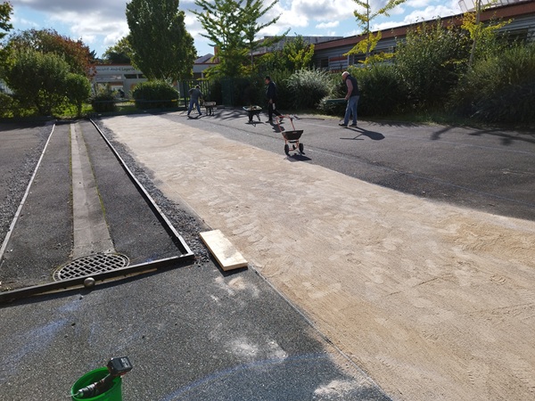 Un soin particulier a été apporté à l’insonorisation des planches servant de butoir aux boules, afin de préserver la tranquillité des associations voisines implantées autour de l’espace de jeu.